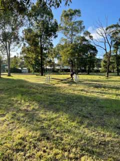 - jumping area with poles and cavalettis