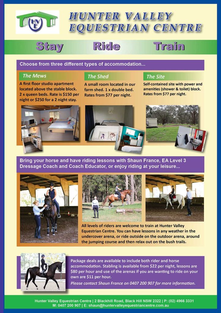 Training sessions are available on request at Hunter Valley Equestrian Centre.